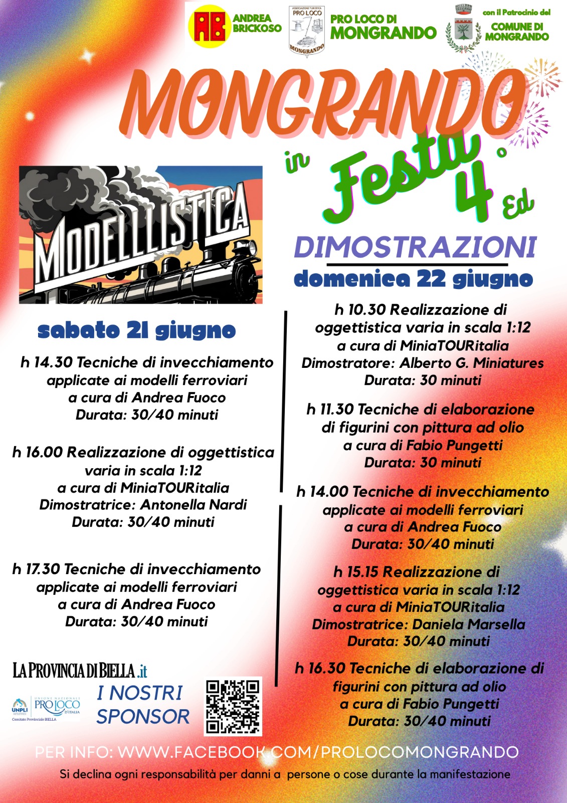 L'Associazione Pro Loco di Mongrando, con il patrocinio del Comune di Mongrando, organizza "Mongrando in Festa " il 21-22 giugno 2025 presso il Polivalente di Mongrando.